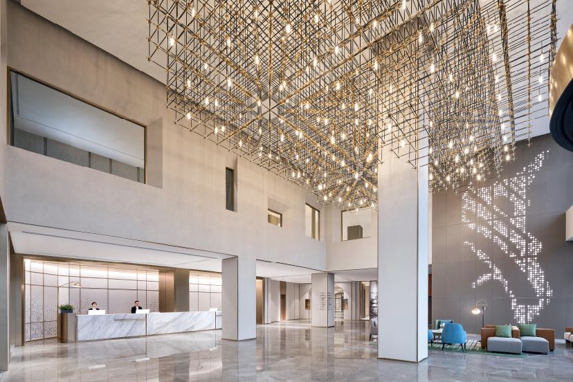 中深建:确实如此。分析环境要素,是所有设计工作开展的前提。具体就贵阳卢浮宫酒店而言,这个项目刚划入贵阳新区,是一个正在建设中的新城,酒店是其中的一部分功能。这个酒店并不像常规的成熟酒店业态群,没有醒目的门头,户外展示也很有限,C位展示都优先给了招商。酒店是从一个侧道进去,且入口处限制非常多,这就大大提高了酒店的一个入口处的动线和气氛处理的难度,需要考虑让客人很顺畅的进入酒店,无论是酒店独立的入口还是与商业连接处入口都是设计师需要解决的痛点。