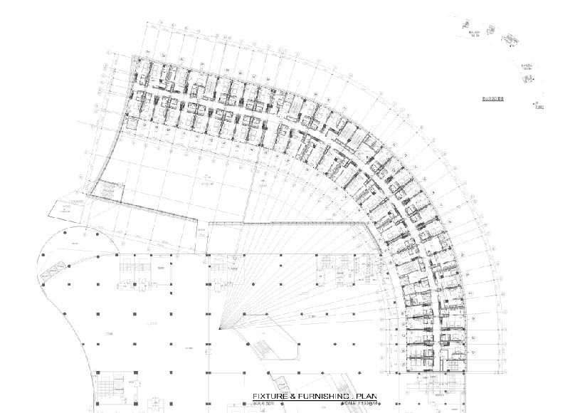 Tulip Inn的空间骨架遵循西方绘画中科学的比例关系,在整体空间的画布上,体现丰富的异形解构秩序。