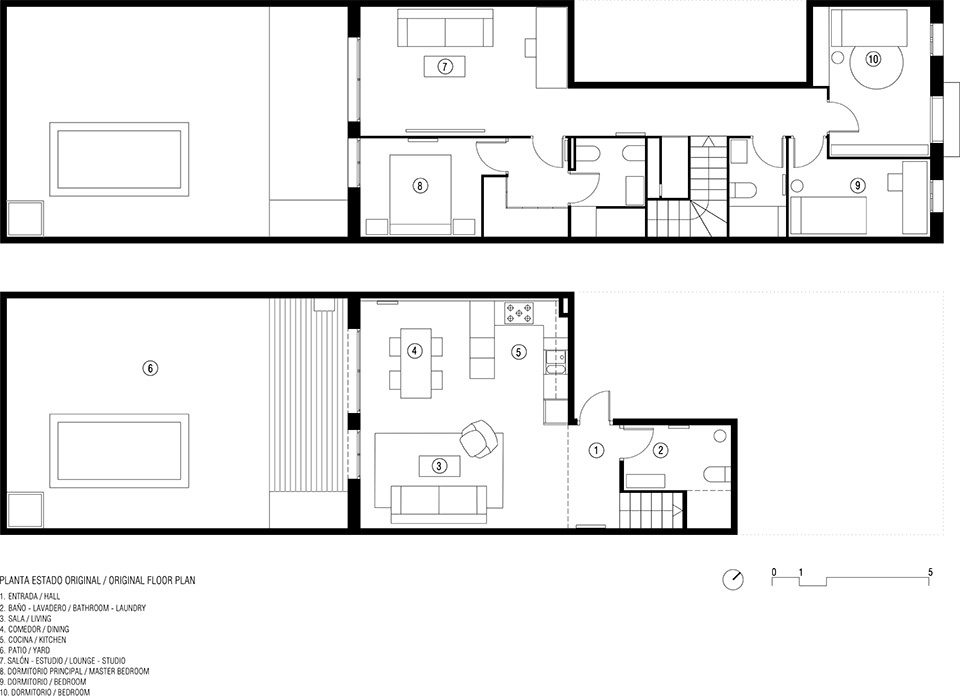 原始建筑的地面层为厨房和餐厅,且与花园相连,楼上为卧室,但原始户型缺少客厅。该项目的任务是通过打造与现有庭院相连的新空间来翻新和扩建。