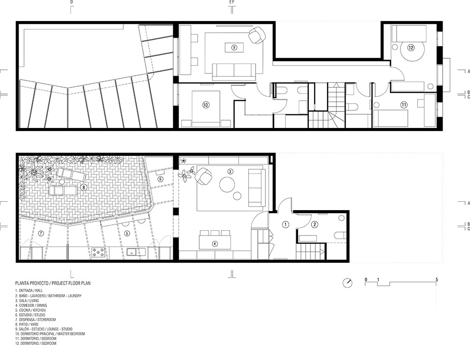 On the first floor, small changes are made to the furniture in the rooms, and the living room/study is reformulated, with the aim of not intervening in those areas where it is not strictly necessary.