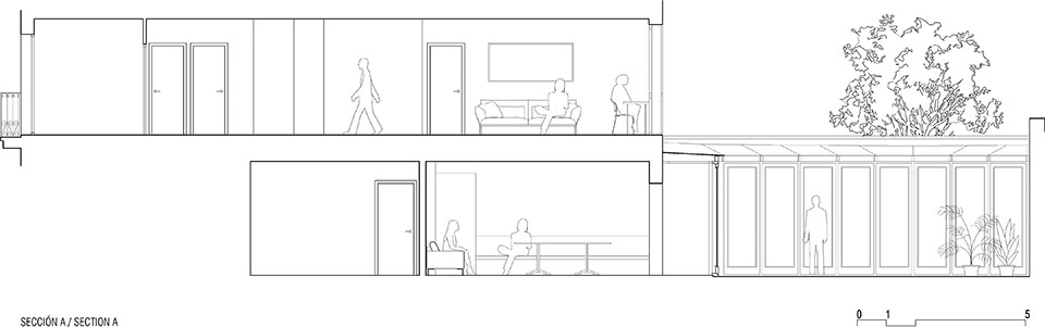 Cooking, eating, and sharing the afternoon with friends under the leaves of a dense ficus tree in an open-air room. Turning the existing garden into an other room of the house creates an oasis within the neighborhood where much of the daily activity happens while enjoying the pleasant Mediterranean climate. The project consists of the renovation and expansion of a two-story house with a small garden located on the ground floor of a small block between party walls.