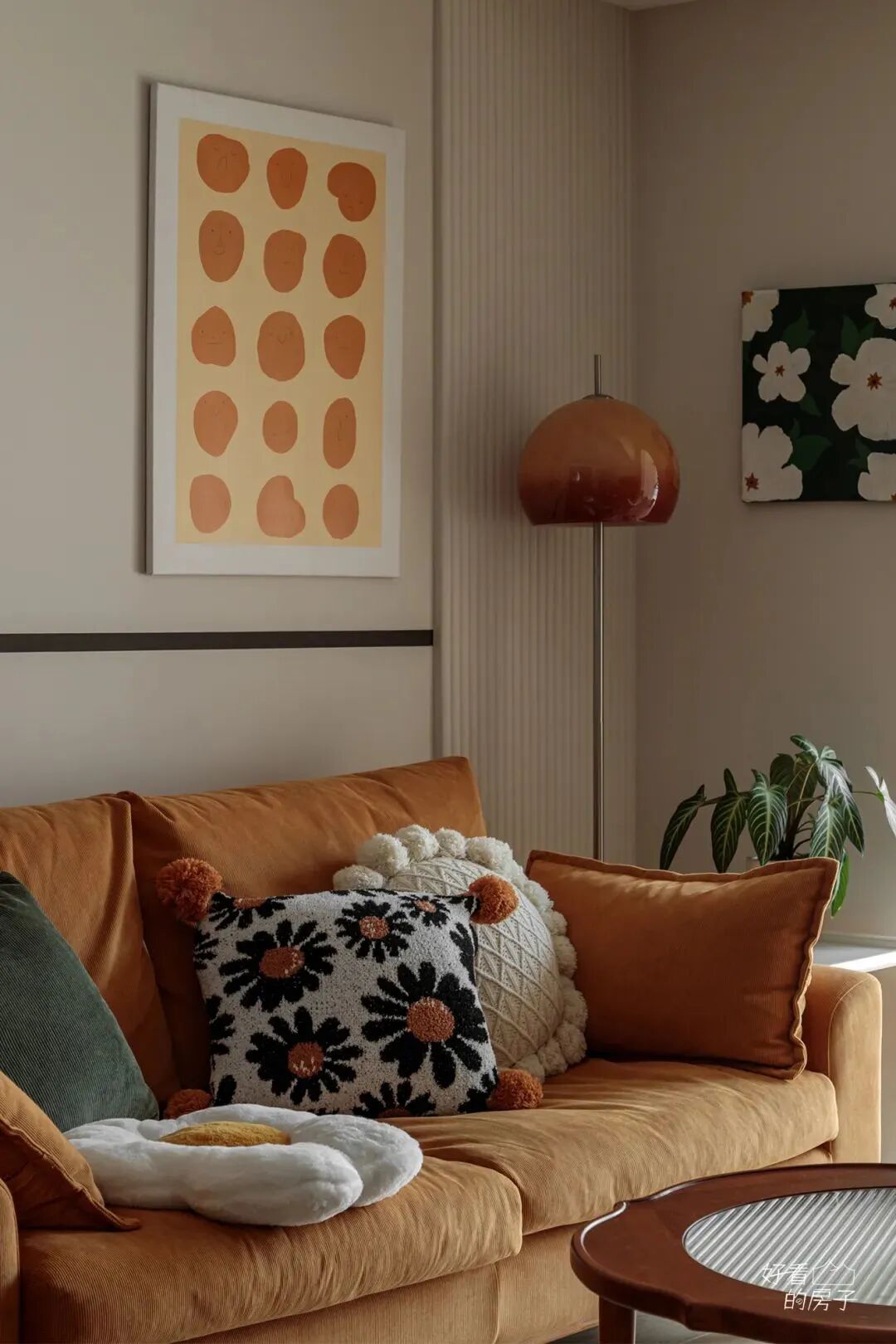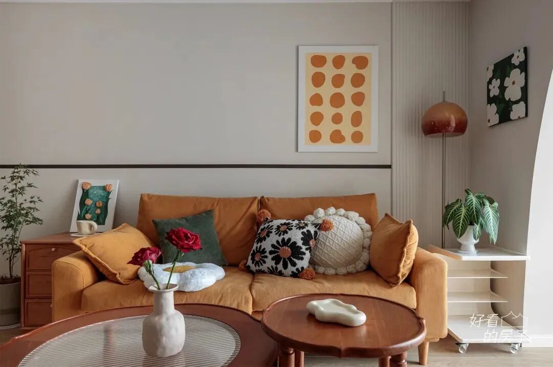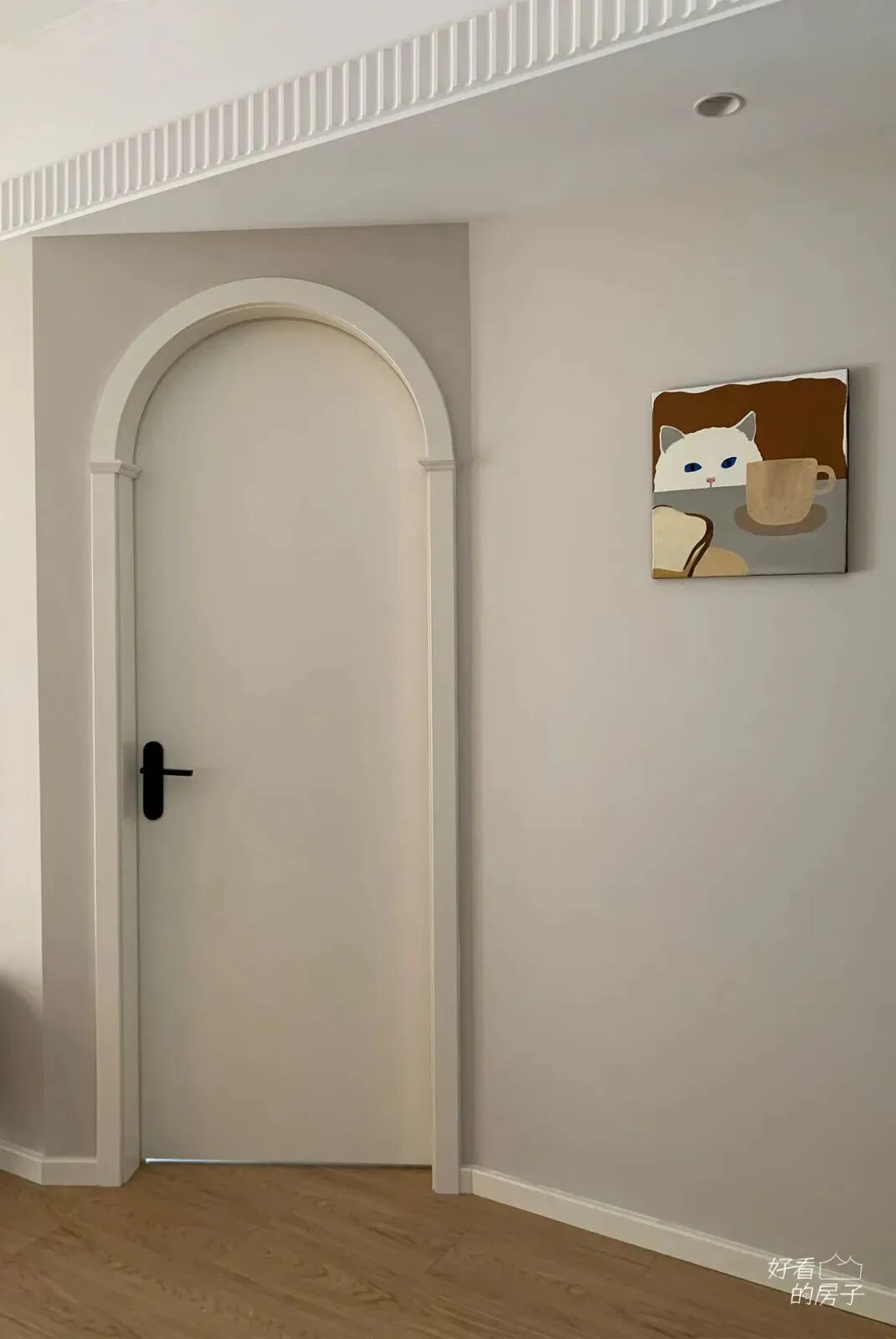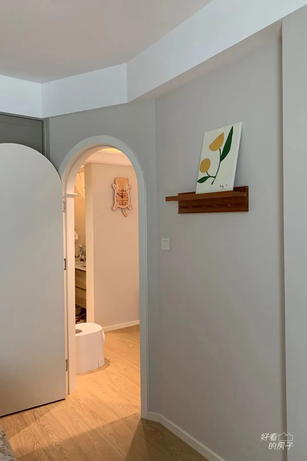 客厅拆掉原推拉门后,做了不规则的圆弧形“小歪拱门”。采光好,视线阔,空间更通透明亮。
