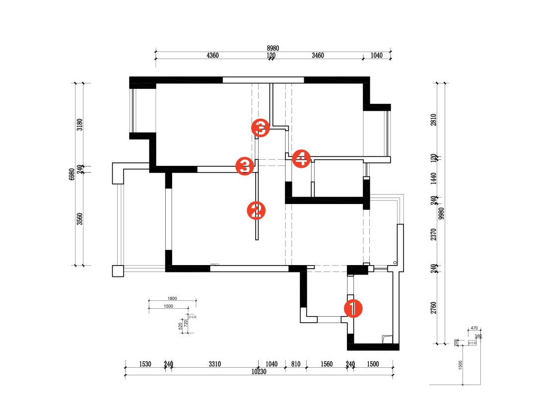 ○基于结构不变,对空间各处的门洞做多种“拱形”“不规则圆弧”造型,增加整体视觉的趣味性,既有呼应又有区分