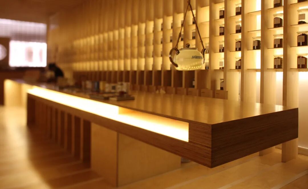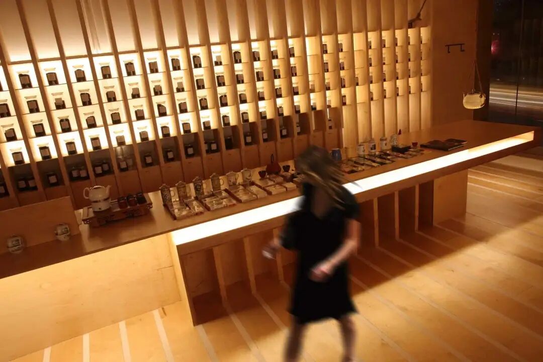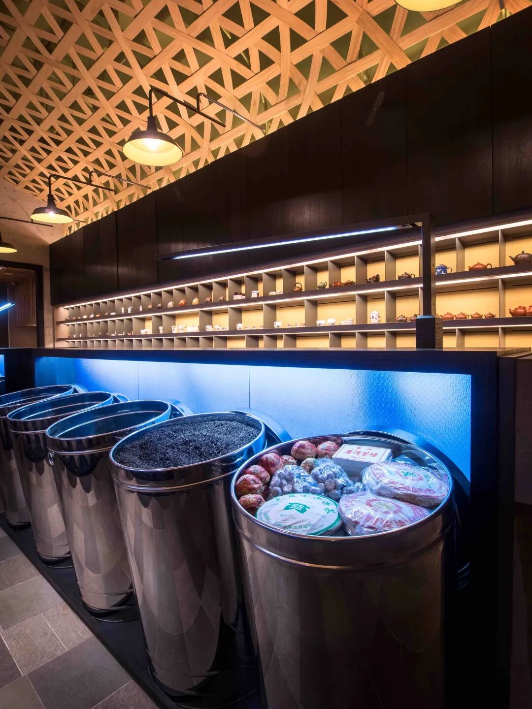 同时也出售不同香气的拼配茶。7米长的茶台以及冲茶吧,是视觉的中心。
