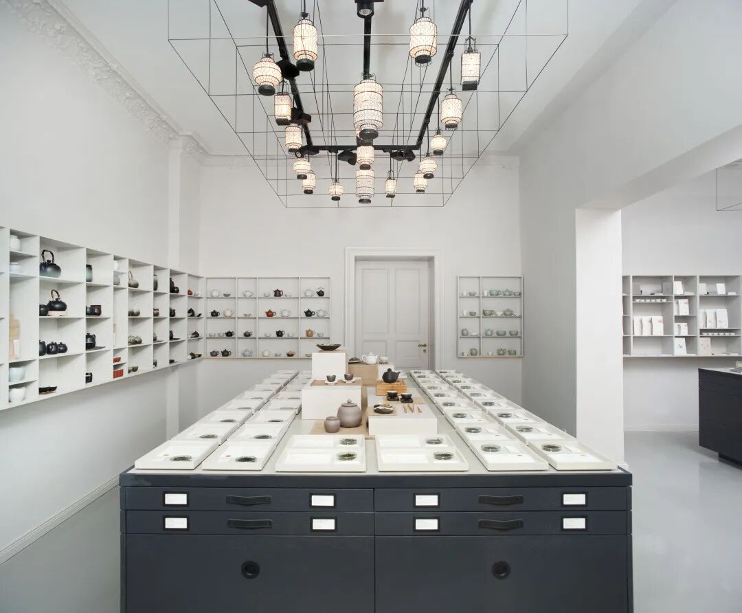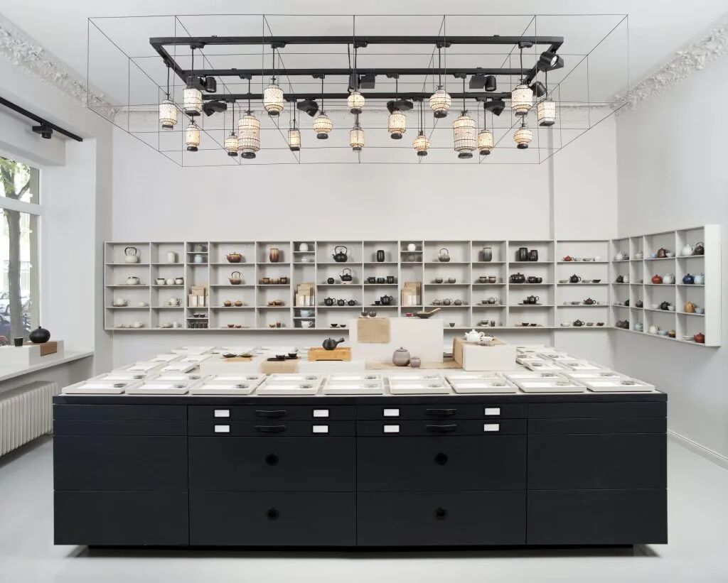 在柏林市中心的快节奏环境中,这家2号店内,中式茶店沿袭着中国传统茶文化,按照茶叶的氧化程度陈列产品(白茶、绿茶、黄茶、乌龙茶、红茶和普洱茶)。