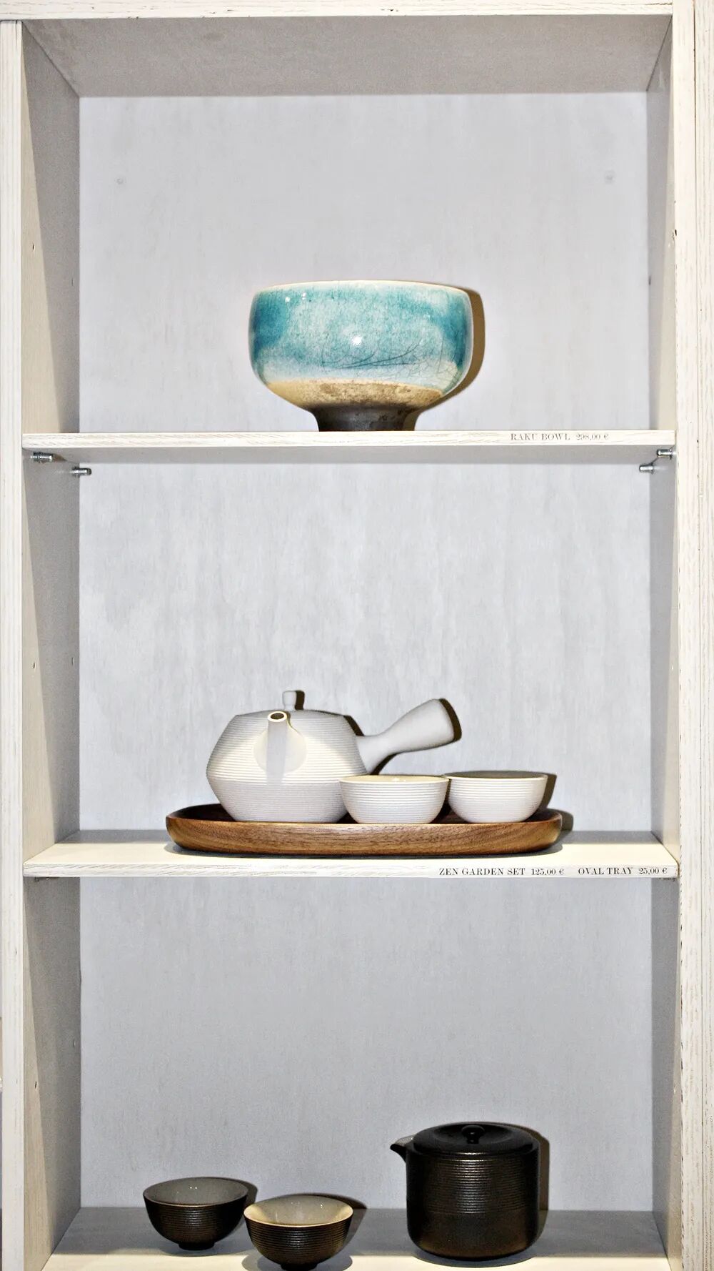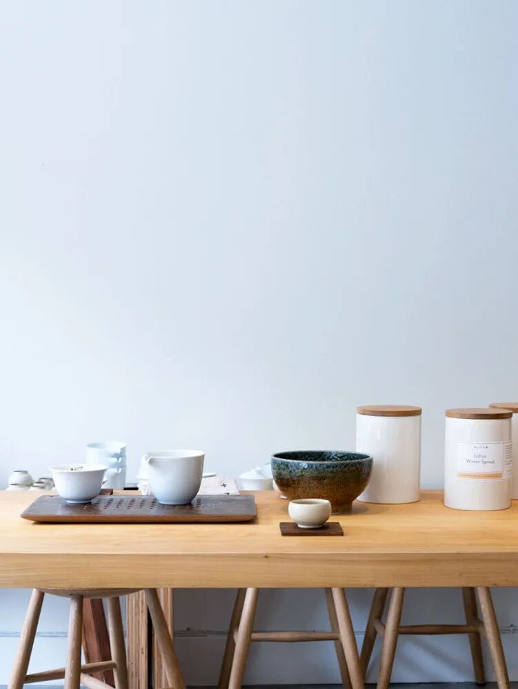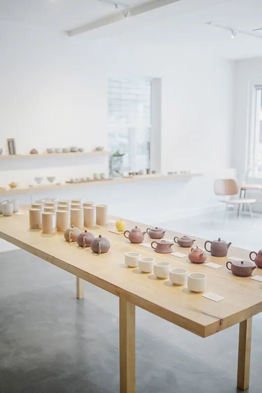 店主与中国大陆、中国台湾以及美国本土的多位陶艺家合作定制茶具。