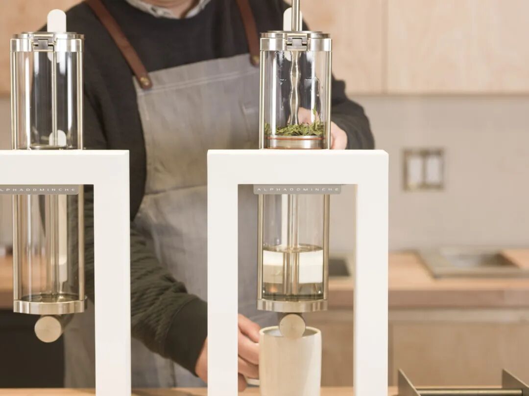 占据店面绝大部分空间的中央茶吧还放置了最新科技的Alpha Dominche萃取装置。