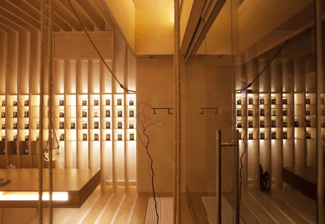 这家位于雅典市中心的茶店,设计公司从日本建筑中得到灵感,利用200块密度板作为内部框架,让人有种进入灯笼内部的错觉。