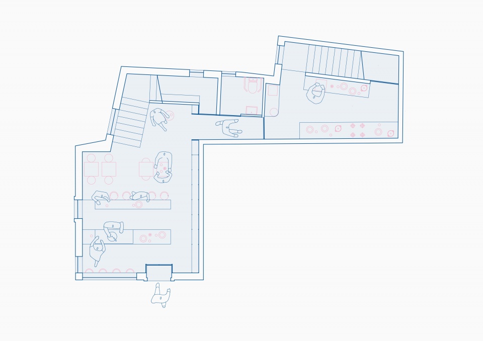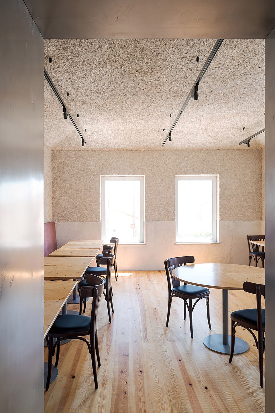 The walls are covered with “poor” plaster and most of the furniture is in stainless steel, emphasizing the idea of a cod workshop. Light is the element that gives nobility and comfort to the space with a raw and bare appearance.