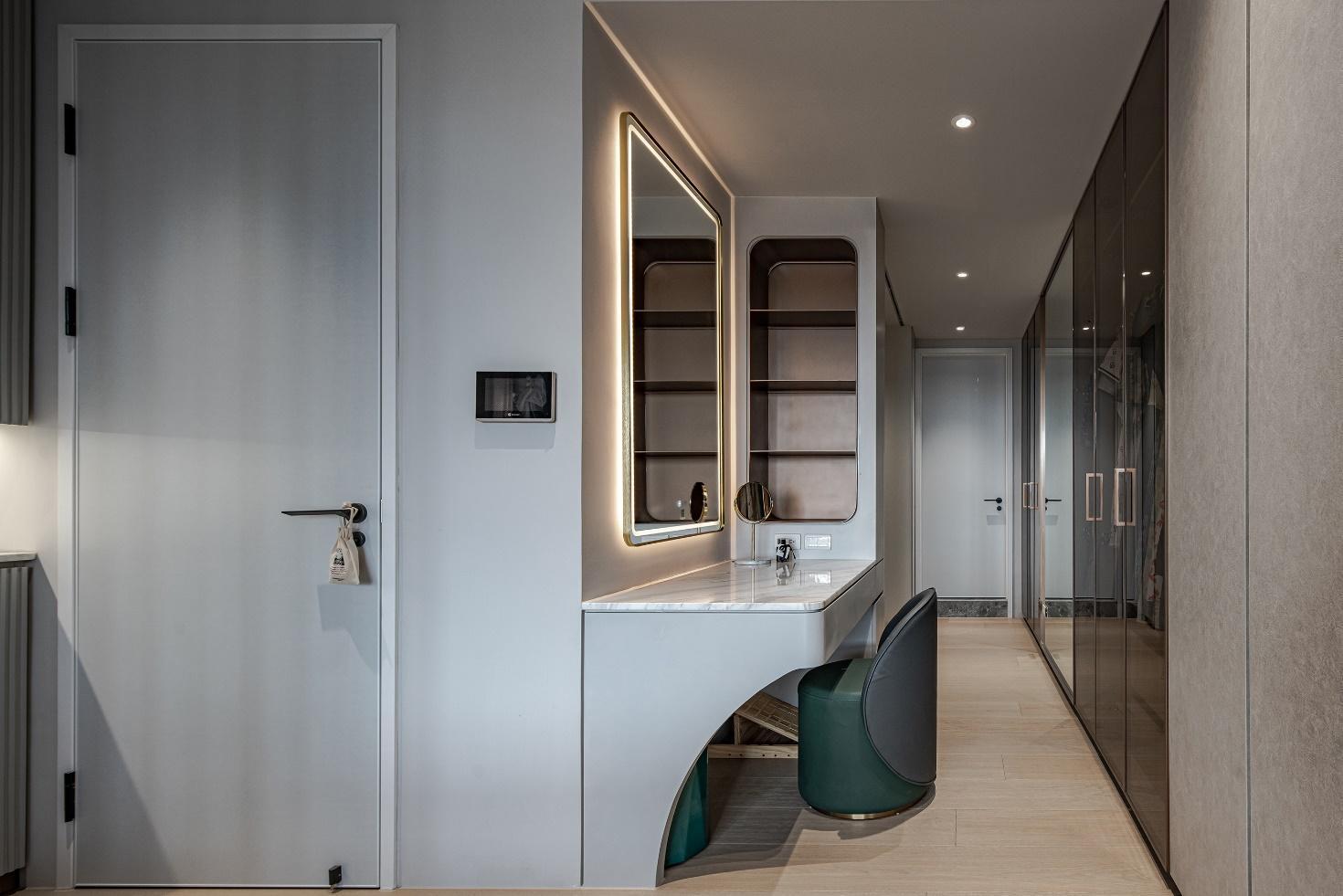 开放式的更衣室配置了穿衣镜,方便屋主搭配穿着。
