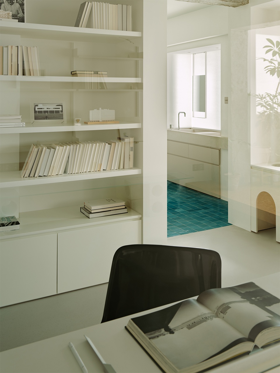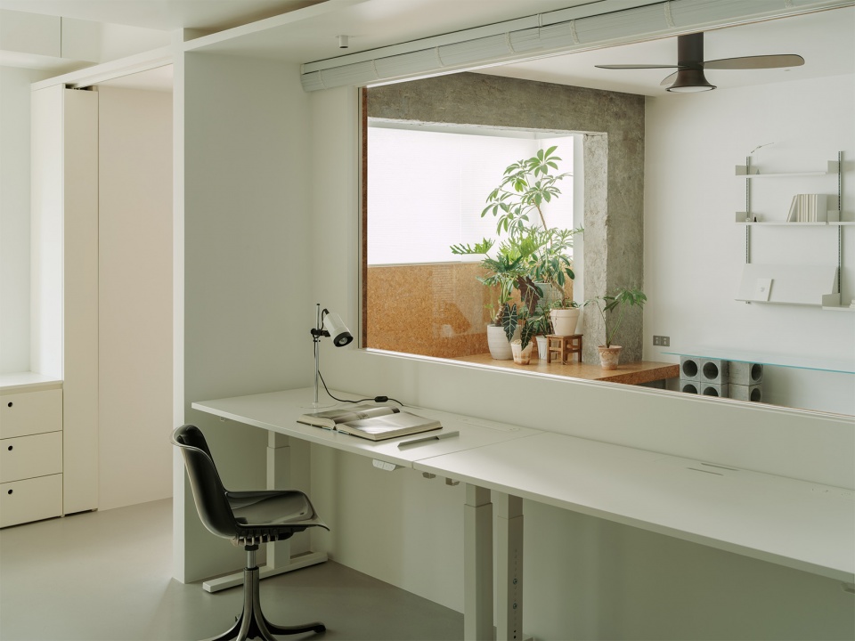 The study employs a semi-open layout, balancing work and social functions. Semi-partitioned and adaptable interfaces maintain spatial flexibility and versatility.