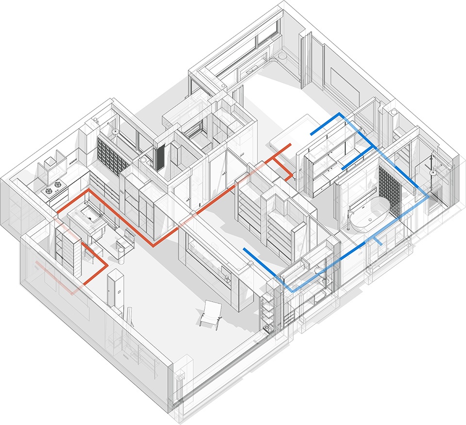 书房两侧分别连通着客厅、书房、主卧、衣帽间与卫浴,形成双动线结构,让日常动线更为灵活高效。空间的可变性:当浴室口袋门、走廊门、客厅折叠门关闭时,书房就能变为独立且安静的工作区。