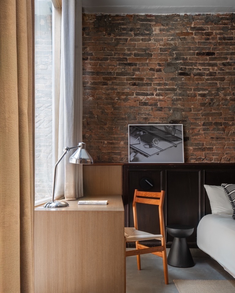 New furnishings and fixtures celebrate contemporary design culture of Southern China, including Hong Kong artists Nicholas Ho and Frankie Au, Photographer Kris Provoost, furniture designers SingChan, 0321 Studio, WUU and Daqian Carpet. An nascent library available to guests offer English language titles on southern China design and history.