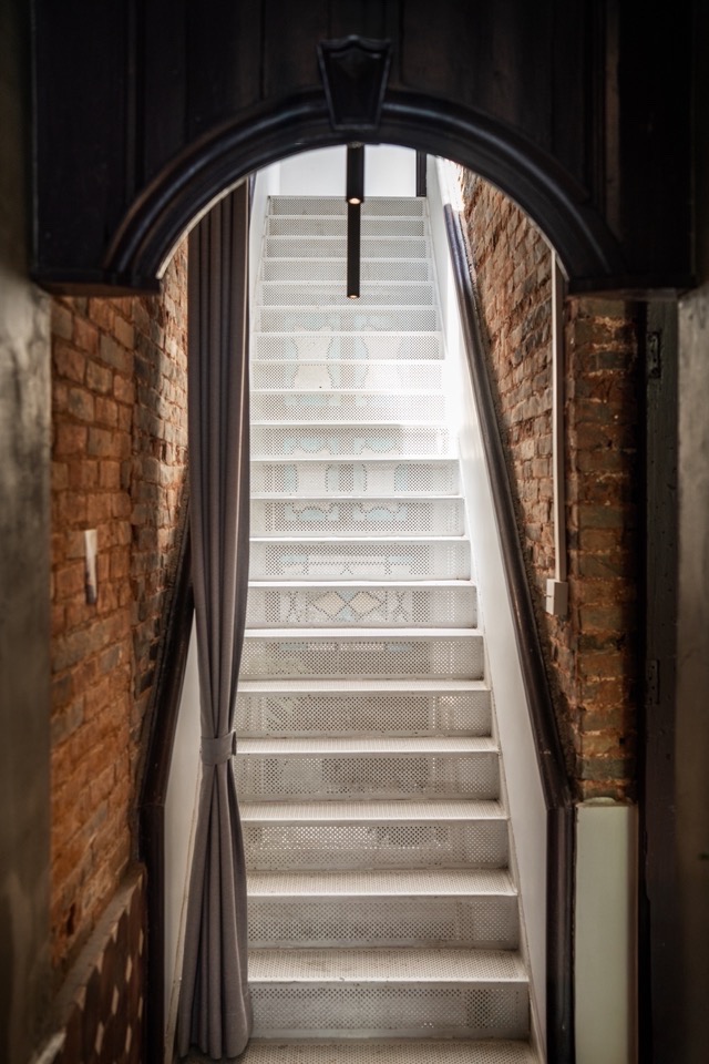 “置换”成为贯穿43号的记忆激活策略。受艺术家 Rachel Whiteread 建筑模铸作品的启发,设计团队将原木楼梯作为模具,浇筑混凝土。当原木楼梯拆除后,其轮廓以另一种形式呈现。换言之,工作室并未用新楼梯替代旧楼梯,而是将其“置换”——稍加抬升,并以不同材质重现,以此在空间中保留原楼梯的位置与记忆的空缺。