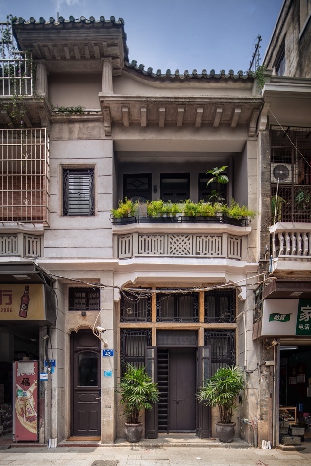 No.43 is situated on Baoyuan Road, a protected street in Xiguan district, Guangzhou. Just outside the west gate of the formerly walled city, the neighborhood’s architecture was free to evolve outside the norms of the formal Chinese city. Beyond adapting to regional climate, material and craftmanship, Xiguan architecture fuses design and building technology from the West, introduced via the Canton System when Xiguan (Shamian Island, in particular) was the only point of international trade in China between 1757 and 1842.
