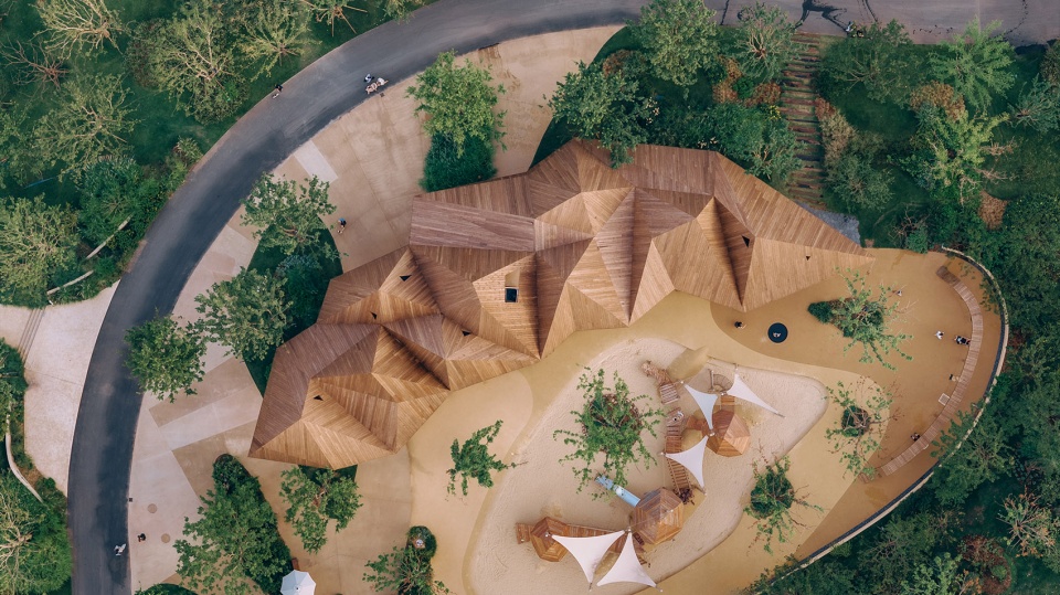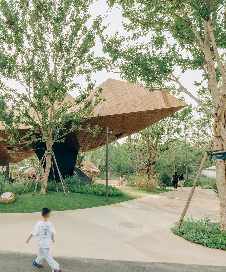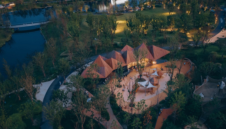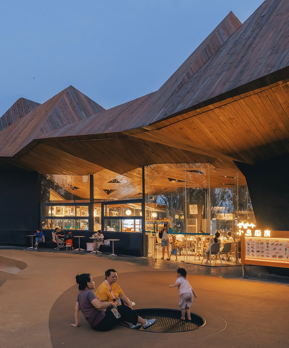 During the design phase, we initially envisioned the roof structure as a rooftop terrace to increase dining seating capacity and enrich spatial experiences. However, this concept was later abandoned due to operational considerations. Nevertheless, the roof’s form was preserved, as functionality is not solely defined by physical accessibility. Visual experience and the overall spatial hierarchy of the park are equally integral to a space’s functional value.