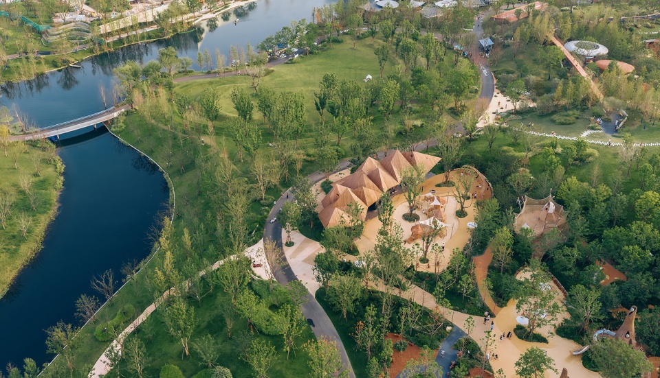 ▼从河、路到餐厅和游乐场的整体空间层次,The overall spatial hierarchy from rivers and roads to restaurants and playgrounds © 朱雨蒙