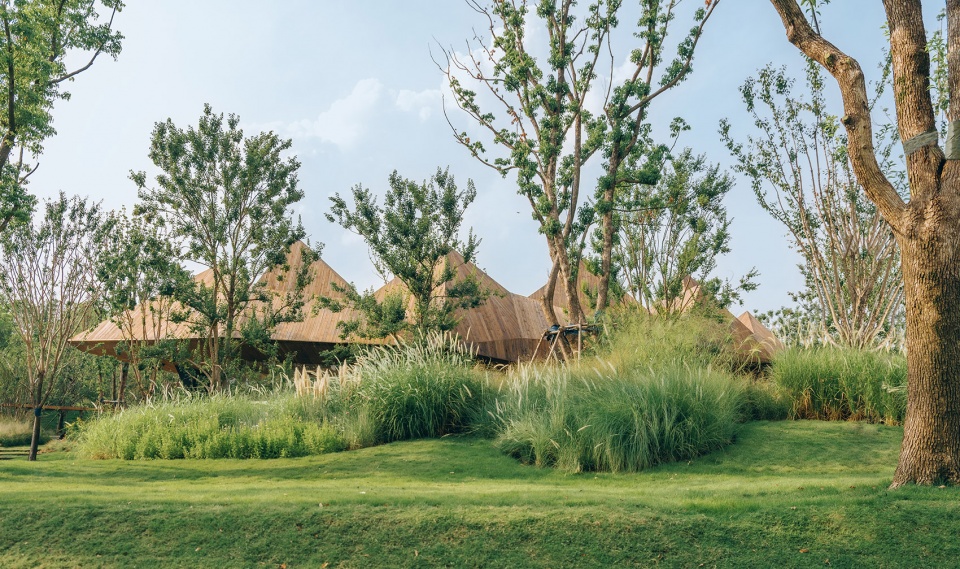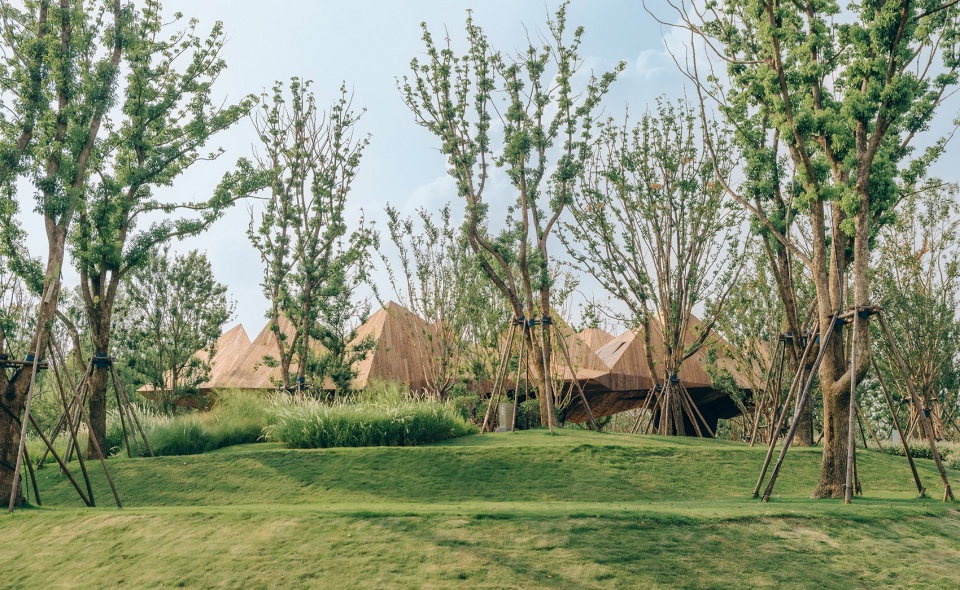 在设计阶段中,曾设想屋顶内也可以进人,增加餐饮位置及多样体验,但后来从运营角度考虑取消掉了,但造型还是保留,毕竟不是只有人进入的空间才是有功能性的,人们的视觉体验以及园区整体空间层次的考量也是功能性的一部分。