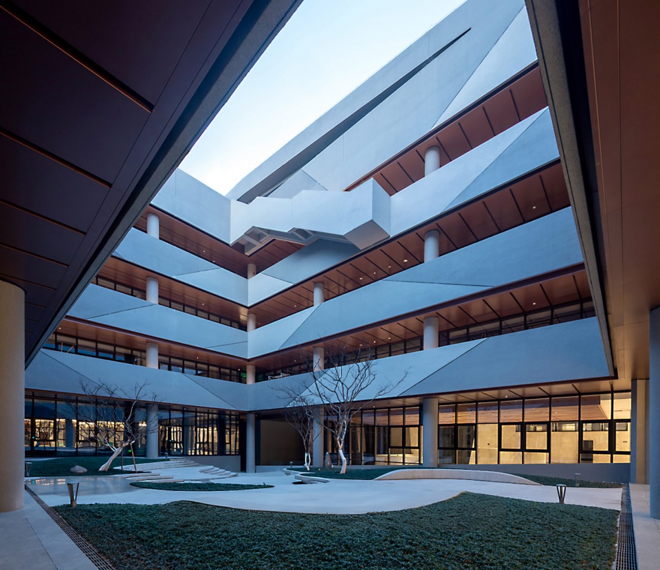 ▼设置中庭及外廊保证各功能的自然通风,Designing atriums and exterior corridors to ensure natural ventilation for all functional areas © 是然建筑摄影