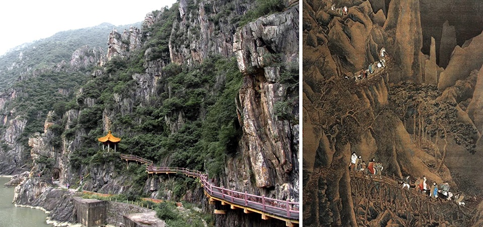 ▼汉中石门栈道及仇英的《剑阁图》,The Stone Gate Plank Road in Hanzhong and Qiu Ying’s Painting of Jiange © 网络