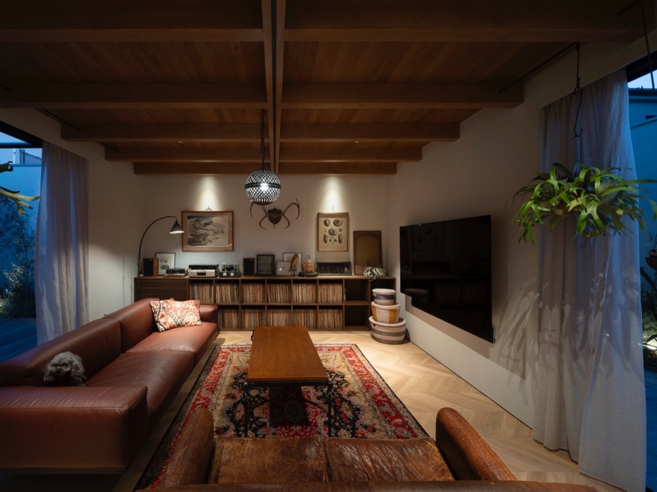 ▼夜间的客厅空间,Living room at night © Hiroshi Ueda