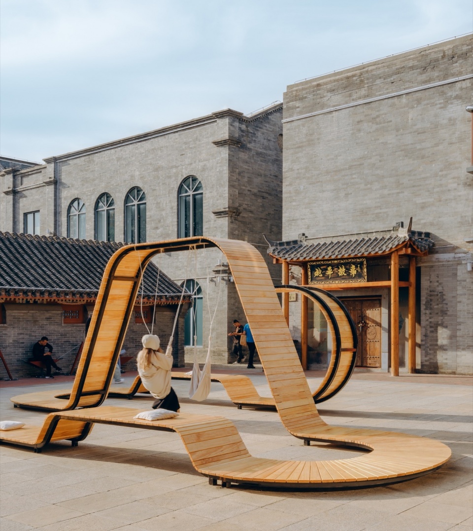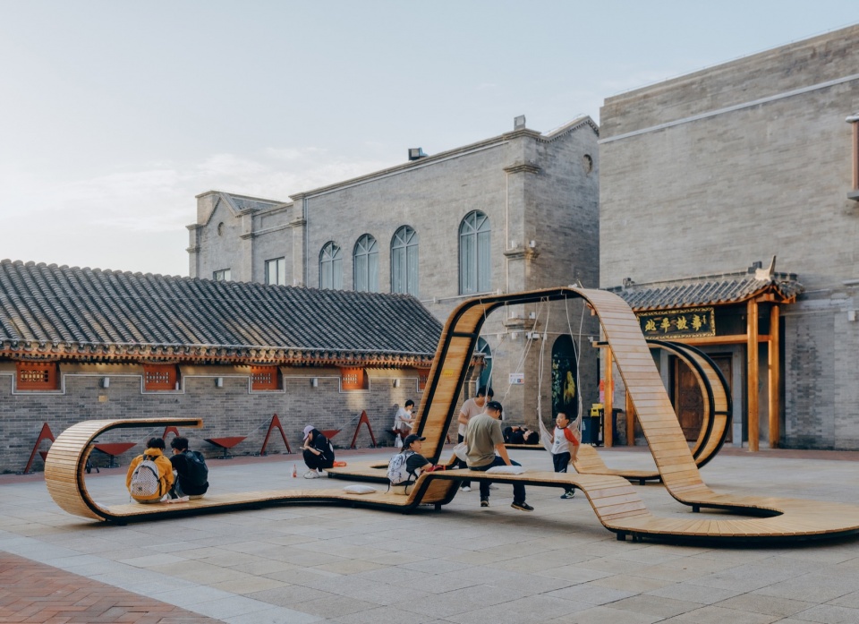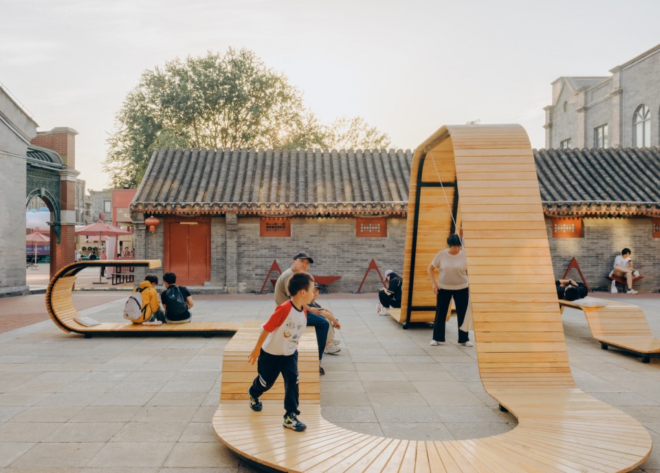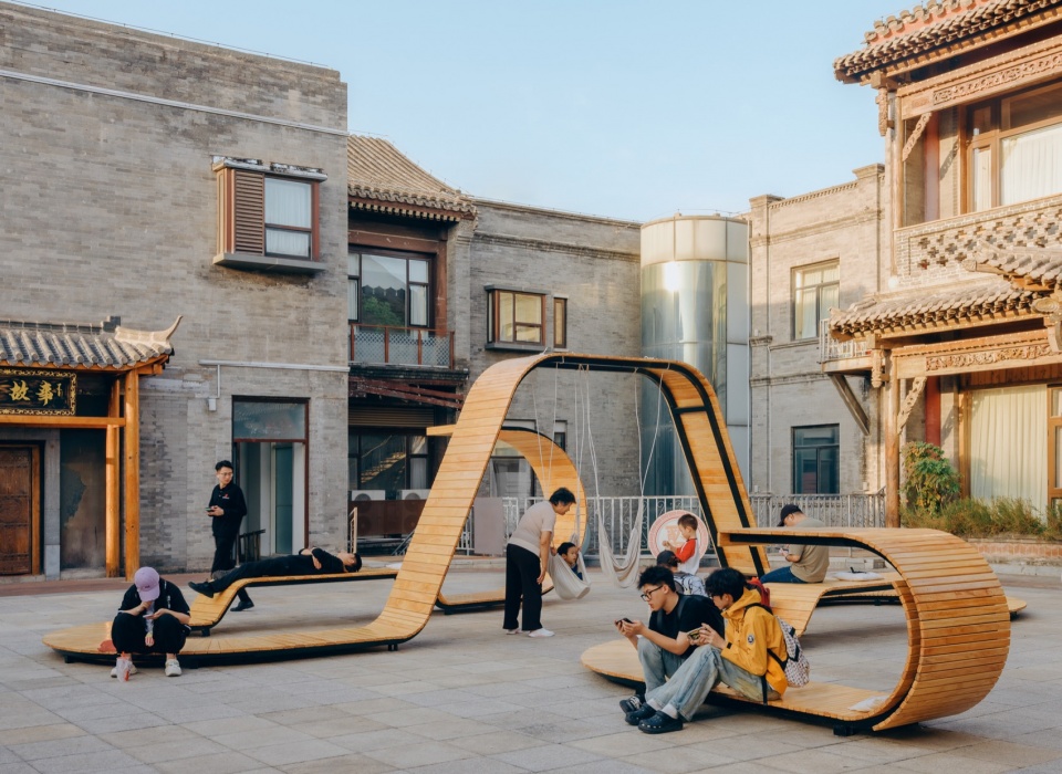 warm brown wooden curves integrate with the hutong environment © 朱雨蒙