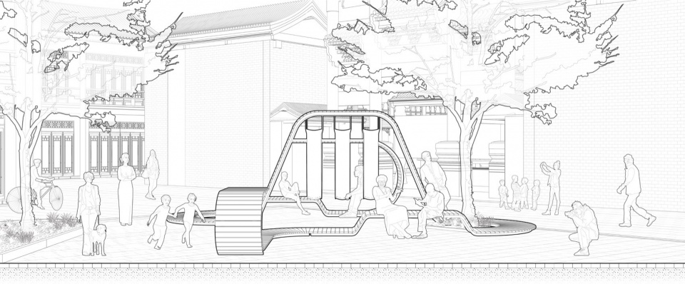 In increasingly accelerated urban life, many daily scenes are fading from memory. “The Noodle’s Tale” and “Beijing’s Bite” through bodily engagement, integrate traditional food culture into contemporary public space, not only revitalizing Qianmen’s spirit as a carrier of food culture but also offering a referential practical approach for public facility design in high-density urban renewal.