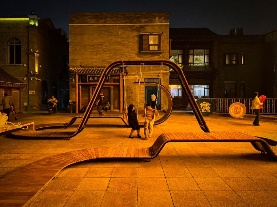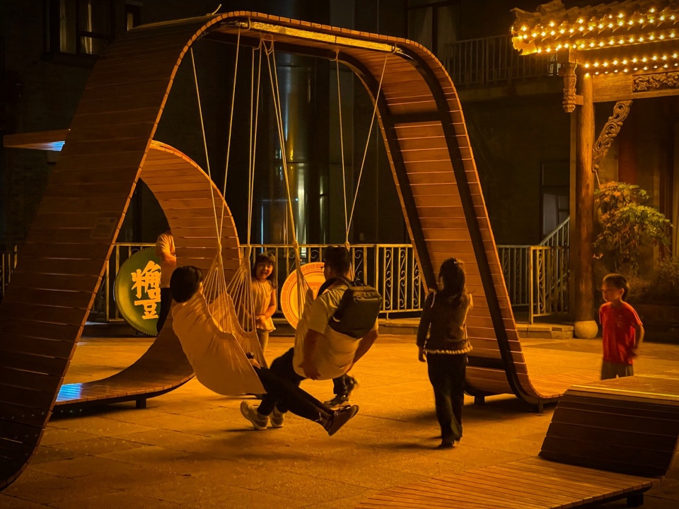 夜幕降临时,木制表面映射出四周亮起的灯光,犹如千家万户的炊火,回应着前门历史上商贾云集、酒榭歌楼的繁华意象。这根“面条儿”不仅将生活与艺术相连,更通过“身体参与”的方式,重新激活了这片街区作为饮食文化载体的场所精神。