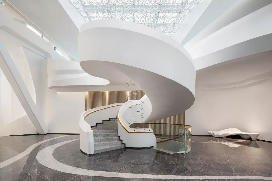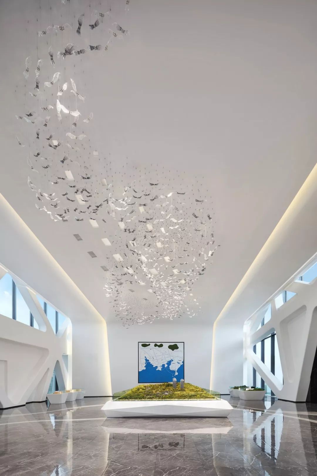 白,可包容万象,也可遗世独立,是纯粹、无干扰的美,也是艺术馆的基调。室内软装设计延续白色主调的简约时尚气质,同时融入浅灰、海洋蓝等辅调,模糊商业与艺术的边界,拉近人与空间的距离。
