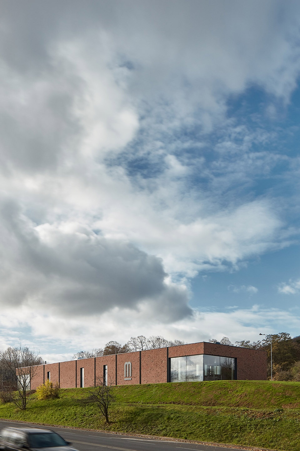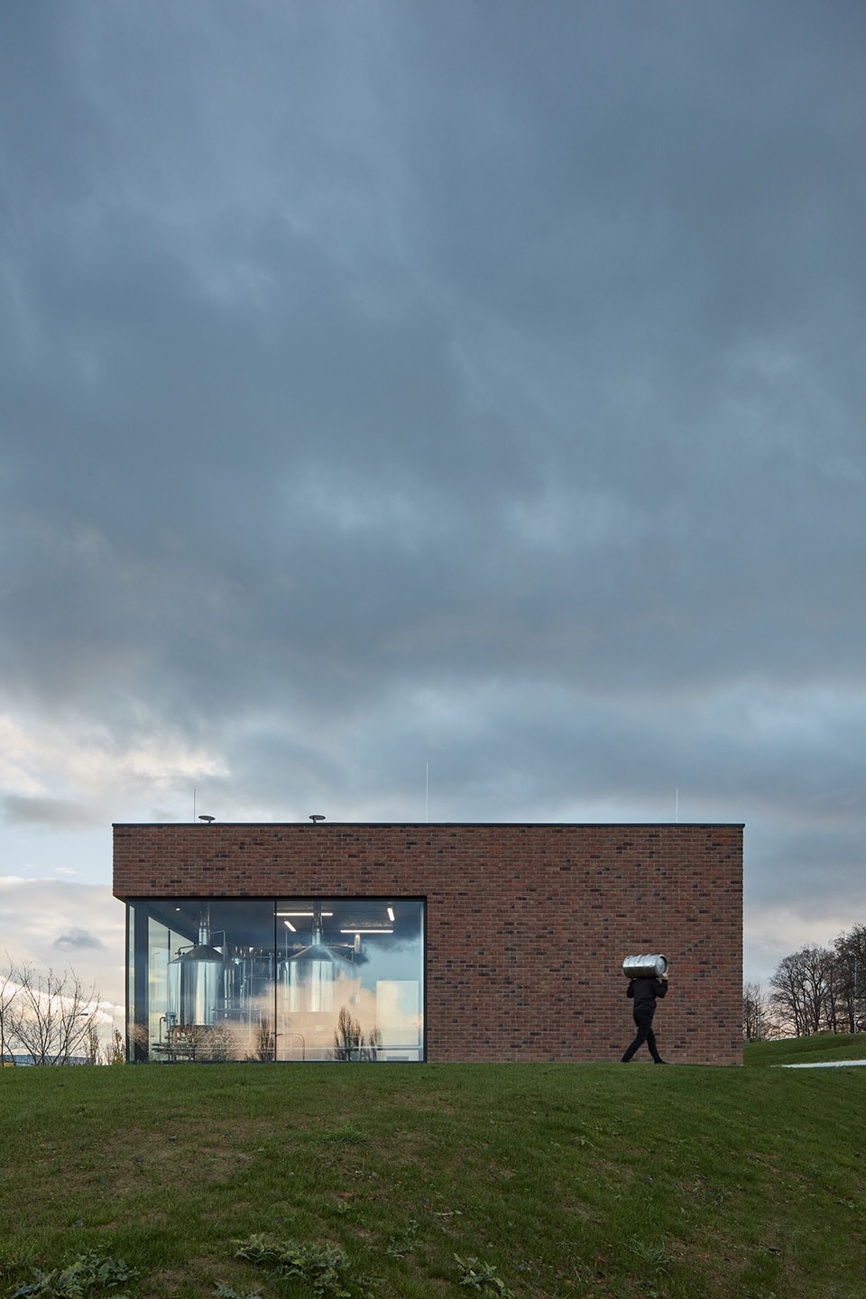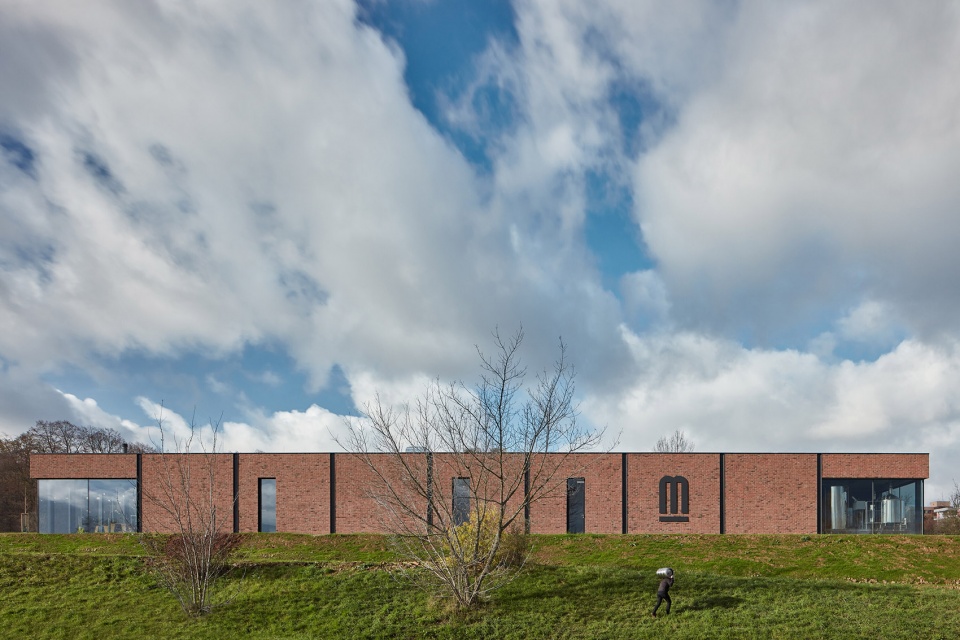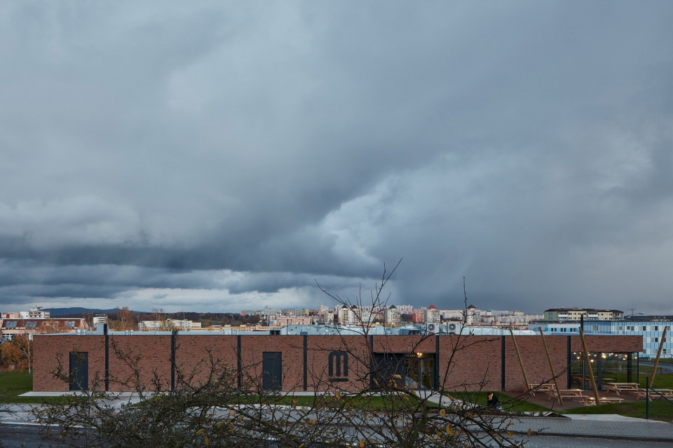 建筑坐落在Pod Koňským vrchem大街上,采用极简设计,平面呈长方形。考虑到城镇和基地本身的复杂性,建筑师决定使用简单的形状。砖制立面的两端为重要的玻璃空间,一侧让人们可以看到建筑内部,另一侧则向外展现了啤酒厂的景象。巨大的玻璃之间是由低饱和度的砖块制成的墙面。