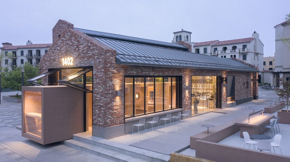 1402咖啡店项目地址位于阿那亚社区内西门通往海边的主路一侧,海边市集旁原有的坡屋顶红砖建筑。分为室内和外摆区两部分。