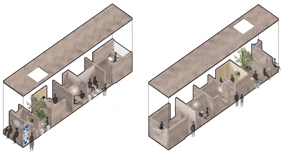 ▼外摆区轴测图,exterior axonometric © B.L.U.E.建筑设计事务所