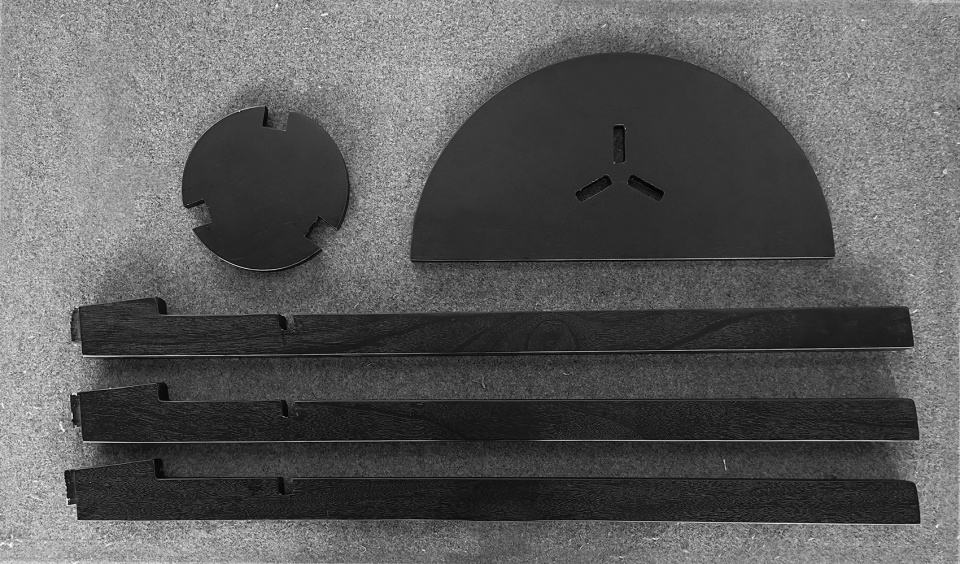 由于收纳空间限制,设计中主体结构材料的选择都基于收纳和回收的理念(定制气模球体与伸缩挂帘)。同时,设计的收纳准则也衍生到家具系统的设计当中,家具系统包括:座位、讲台以及不同尺寸和高度的小桌子,讲台采用了无螺栓的插件板组合方式,在“非常”时期,可由使用者自行拼接成形使用,在“日常”时期,可以板材的方式垒叠占据较小的空间。
