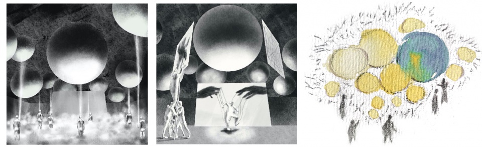 The interaction between the main spheres and the three designed screens & the interaction between the light and shadow