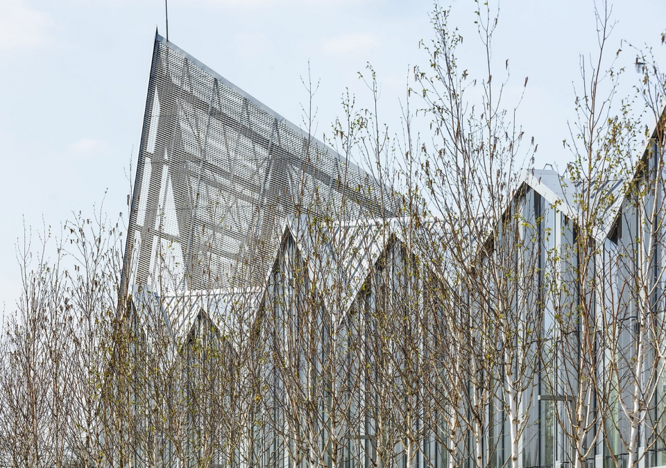 相对于城市中的住房、小型公共设施、办公与其他商业建筑来说,大体量是工业建筑显著的特征之一。然而工业建筑并不意味着要向舒适度妥协。“折叠”屋顶的形式不禁让人们联想起19世纪带有大型凸窗的工业机库,同时也有利于节能以及营造出良好采光环境。技术区与制造区被郁郁葱葱的绿色景观包围,生机勃勃的花园小巷将为人们提供休憩的场所与视觉的享受。功能空间与绿色空间的交织将弱化建筑的工业性质,同时保证设施的运作效率。