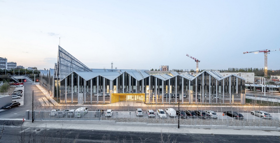 这座宏伟的工业建筑坐落于巴黎城郊,是一座混合用途的公共服务设施。就目前来说,综合类建筑并不仅限于住房、办公以及商业功能的混合,城市还需要其他类型的综合设施,例如能容纳重型设备的场所。奥利T9有轨电车维修中心就是一个典型的例子,即使在夜晚,该建筑也向人们展示着它不容忽视的强大存在感,特别是当从火车上看时,这种印象会更为明显。维修中心的日常工作很早就会开始,很晚才会结束,这条线路每4到5分钟就会有一条有轨电车呼啸而过,每天将承载7至8万名乘客,这忙碌画面构成了独一无二的城市生活图景,也构成了大巴黎城市景观的一部分。