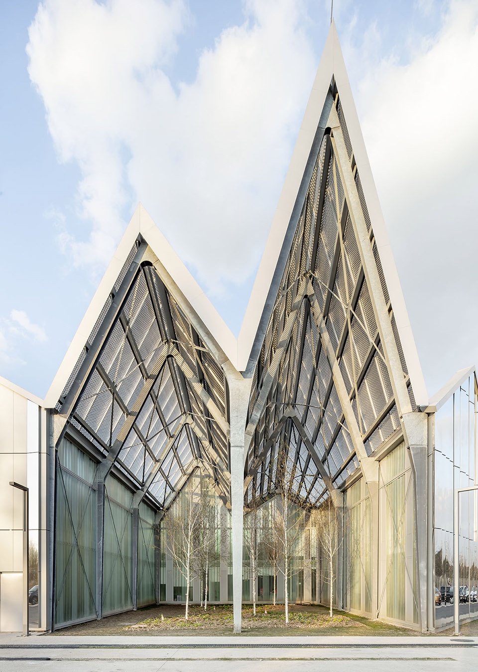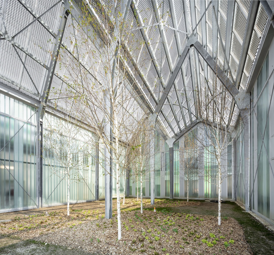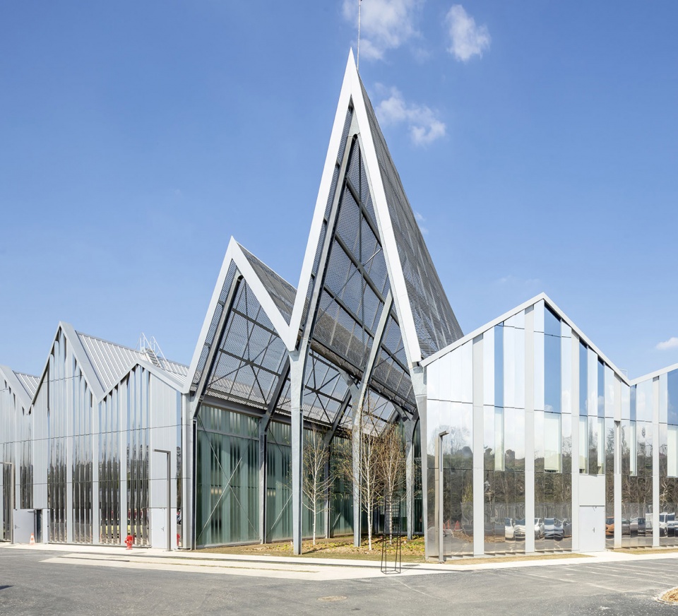▼具有代表性的“折叠”屋顶让人们联想起19世纪带有大型凸窗的工业机库,Typical “folding” roofs are reminiscent of 19th-century industrial hangars with large bay windows ©Luc Boegly