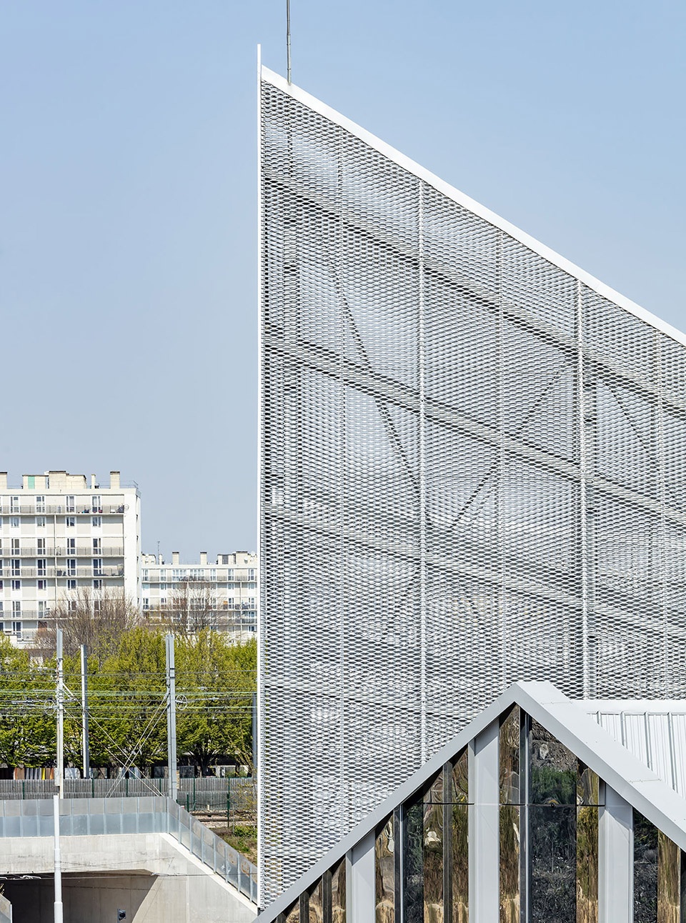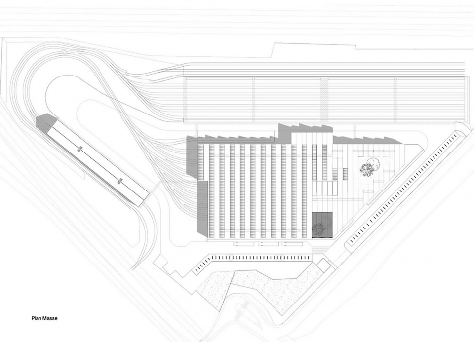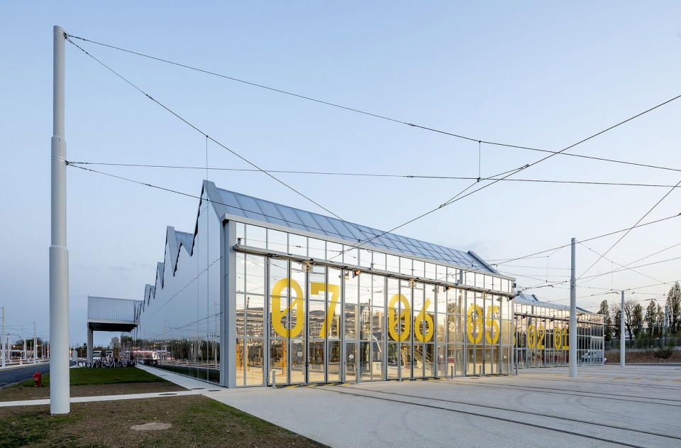 在本项目中,三种功能空间并置在一起:首先是有轨电车,带来了无可挑剔的技术之美与工业设施的雄伟之感;其次是由Ferrier Marchetti Studio事务所设计的建筑;最后是布满铁轨与设备区域的巨大设施平台。三者并置目的是为了在场地上营造出连贯的整体景观。设计采用了简单的材料,旨在探寻建筑与工业设施之间的平衡,以最真实的姿态唤起该建筑与城市之间的共鸣。