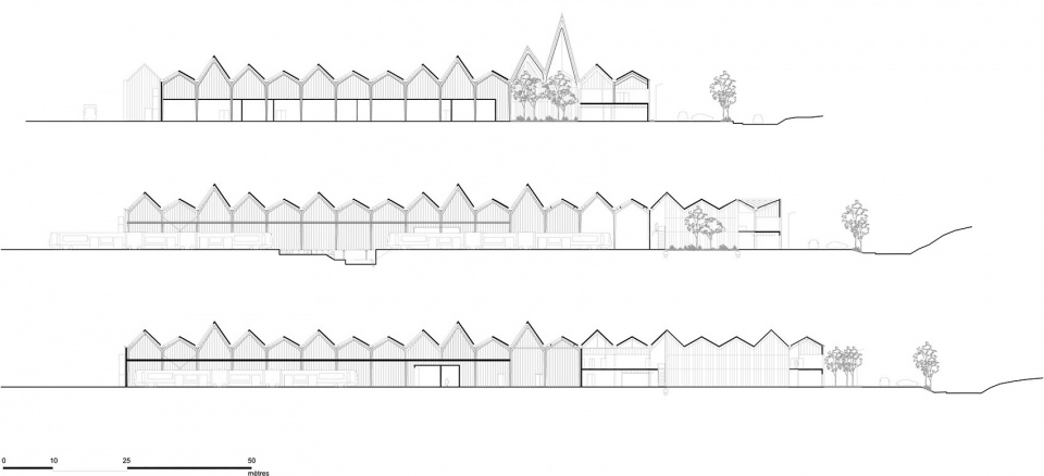 ▼铁轨一侧立面,facade along the tramway trak ©Luc Boegly