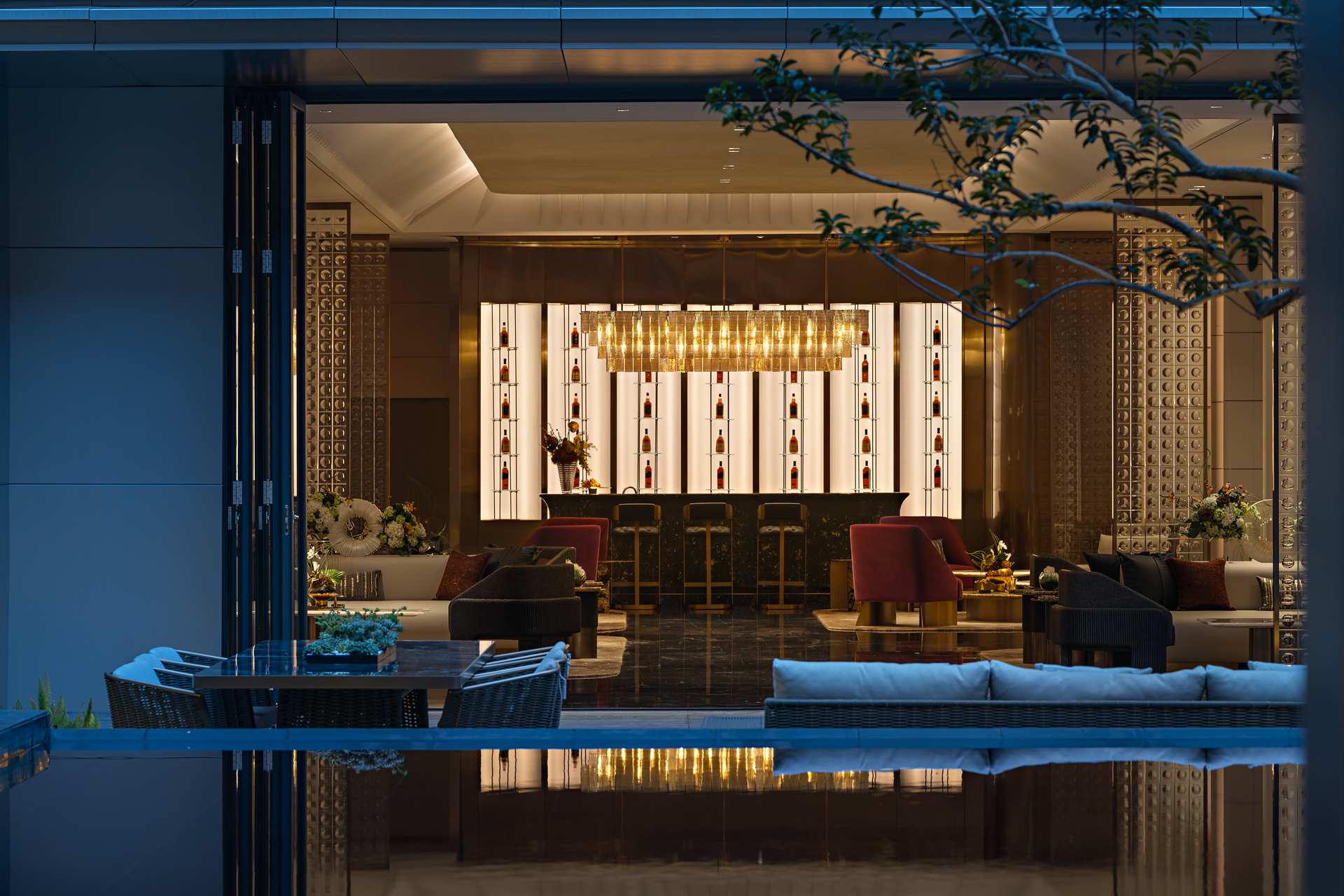 从远至近,空间犹如城市生活的画卷缓缓展开,水晶吊灯点亮了空间的灵动性,在光线的作用下,却给人一种隽永之感,奢华之下是让人无限遐想,汇聚品酒、聚会、宴请、商务等多种生活场景,这裡不仅是城市喧嚣中的一处静谧休憩地,更是精英们社交聚会的理想场所,任其尽情享受都会生活的千般风情。
