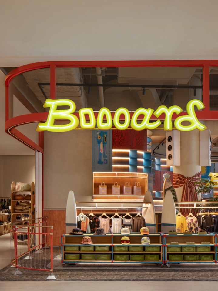 The name Boooard draws inspiration from the surfboard—the essential vehicle of wave-riding. Here, it transcends its natural element to become a dining table for daily life and a social platform for connection, evolving into a versatile “shore-board” space blending F&B, retail, and curated exhibitions.