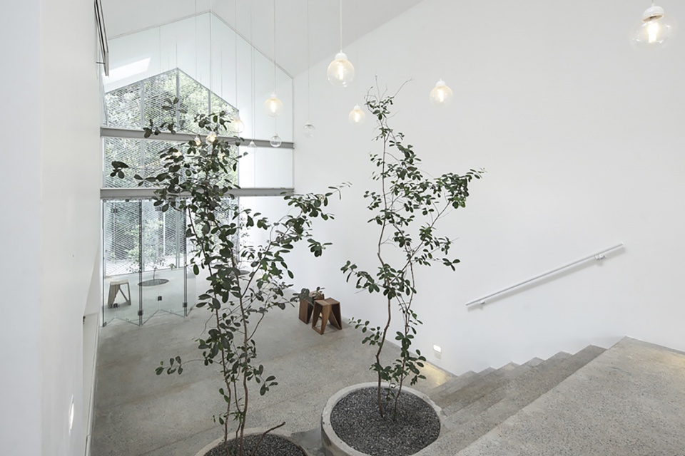 透过天窗过滤的柔和光线洒满空间内部,深凹的玻璃可以减少刺眼的强光与热增益,高高的天花板会吸入热空气,从而产生空气流动,而纵深的天花板空腔创造了一个热缓冲区,使室内形成一处可被动控制与调节的环境。