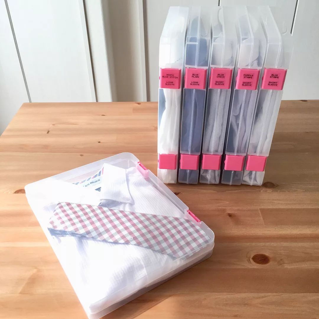 Tips:把叠过的衬衫放进A4大小的文件盒里装进行李箱,不怕被压皱哦~