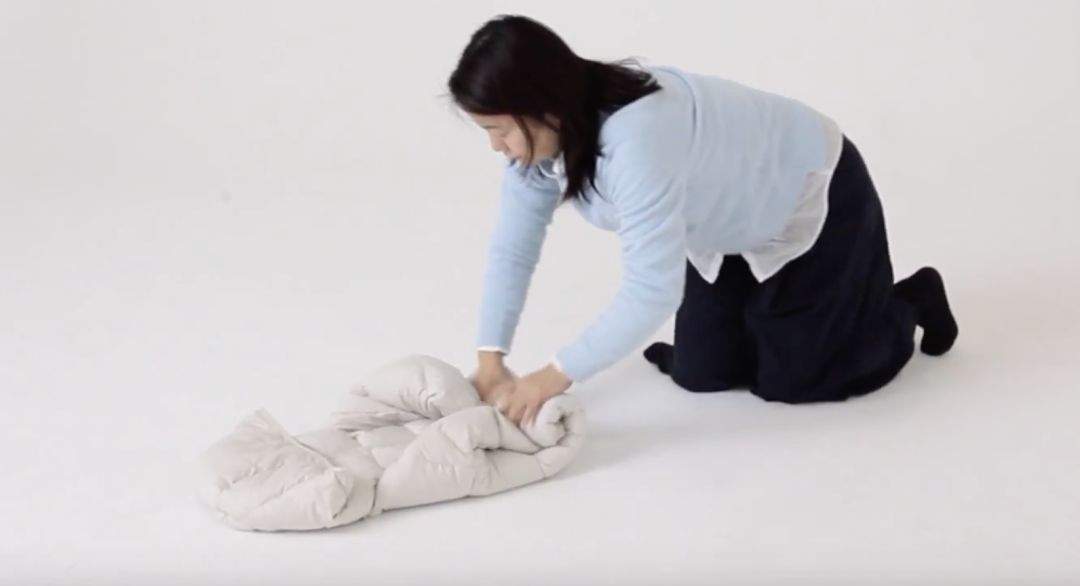 Tips:如果衣柜空间充足,羽绒服尽量选择挂放,避免折叠破坏鸭绒结构,这种叠放法适合放进行李箱。