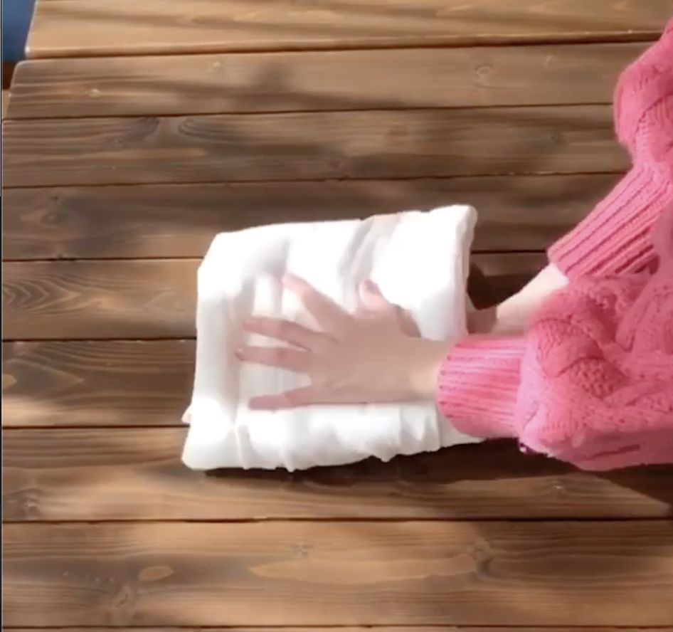 在五秒叠衣的基础上进一步折叠,就可以得到可以竖起来的豆腐块啦~