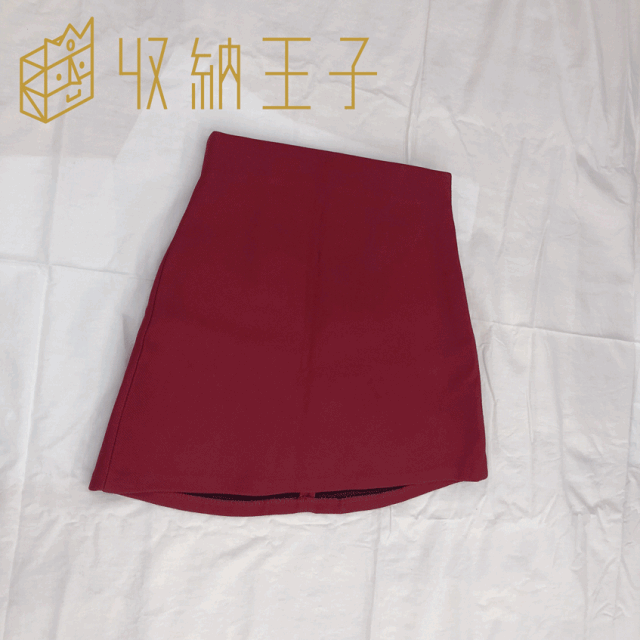较短的半身裙可以省略平铺后对折的步骤,直接将比腰宽的部分向里折。