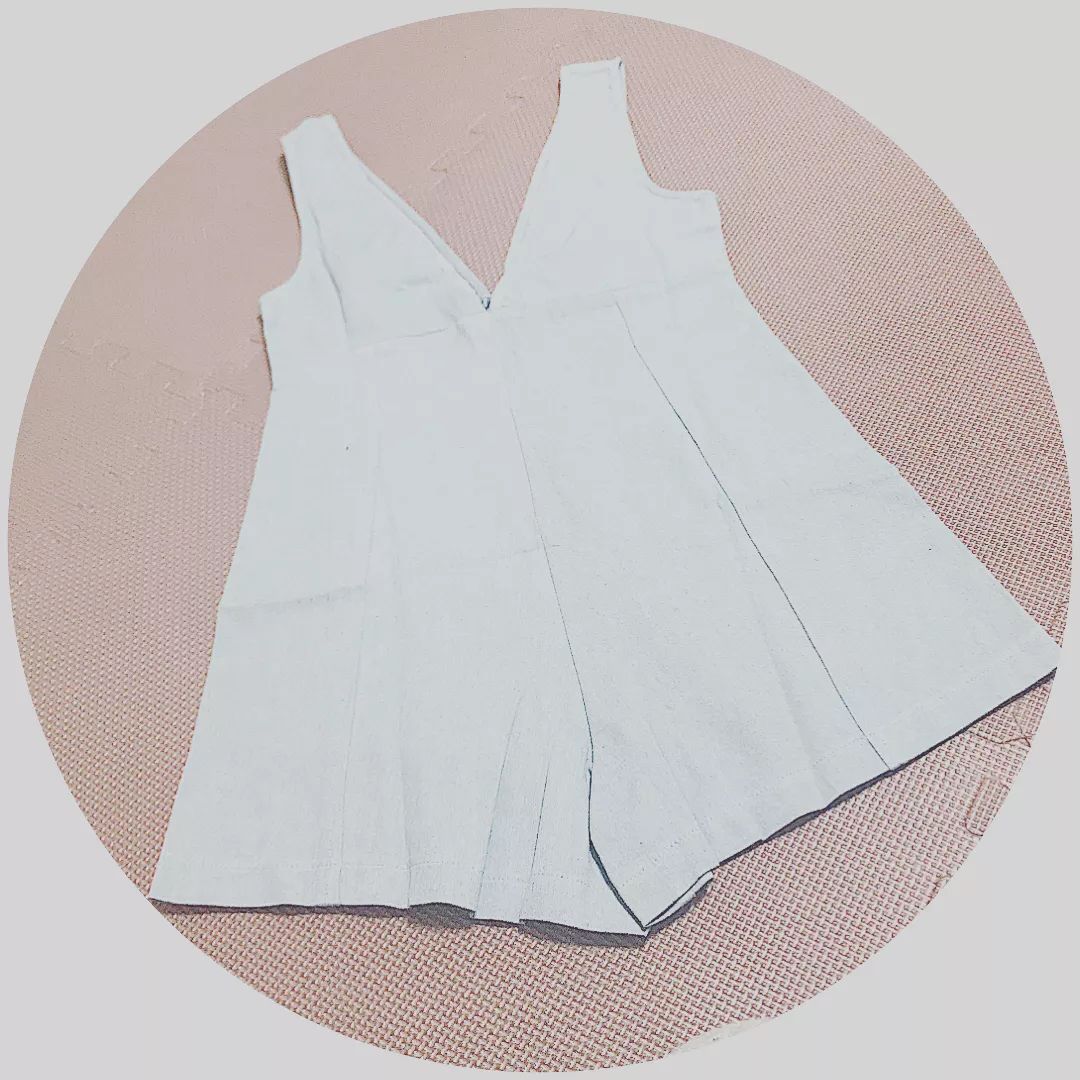 1.背带裙一般以肩宽为准,将比肩宽的部分向里折;