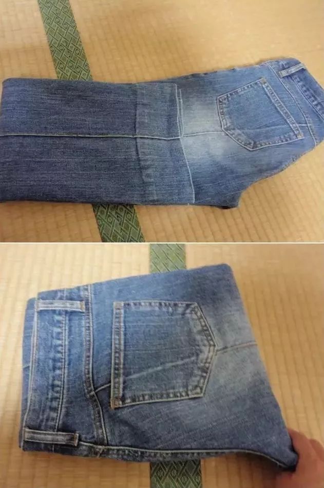 Tips:如果是西裤,务必要平铺之后再进行折叠,有条件的家庭尽量选择裤架挂放。