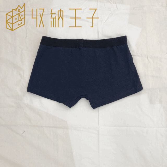 内裤左右对折之后将裤腿向上折,然后塞进裤腰,就不容易散开啦~