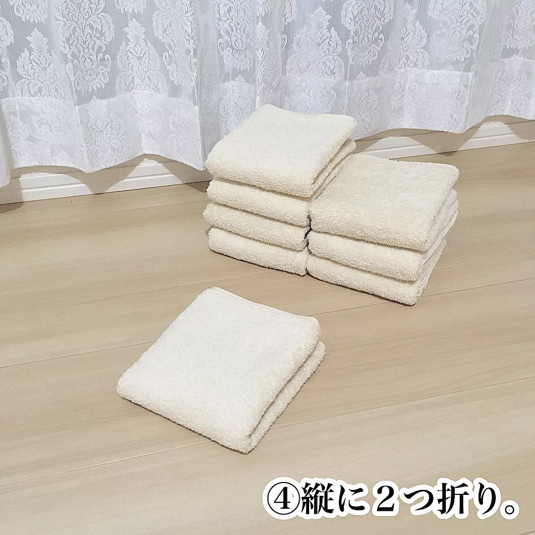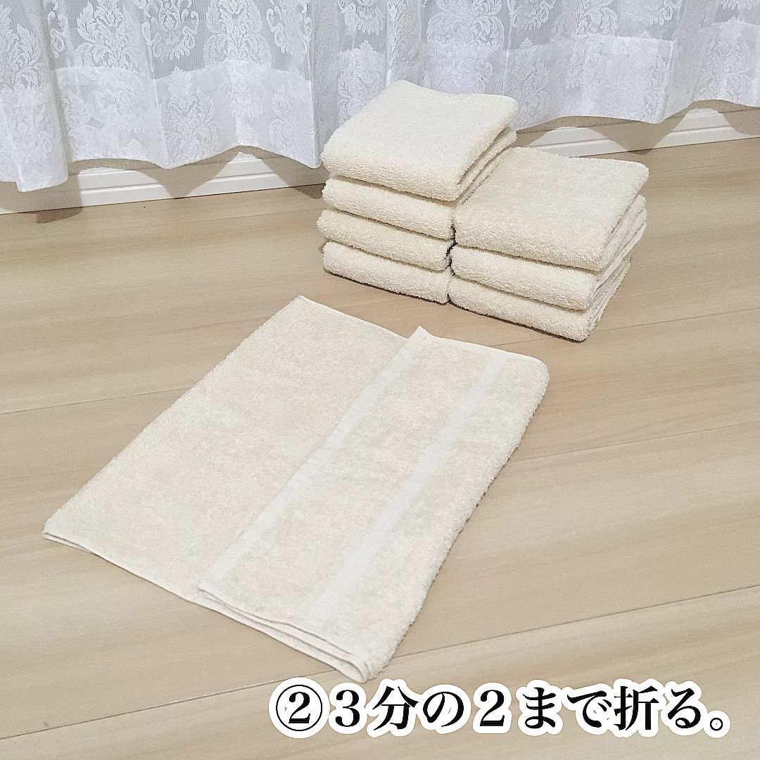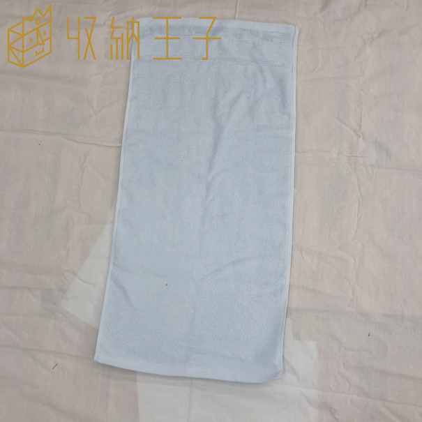 1.毛巾平摊,将两侧向中心线折,折到原来的三分之一大小;